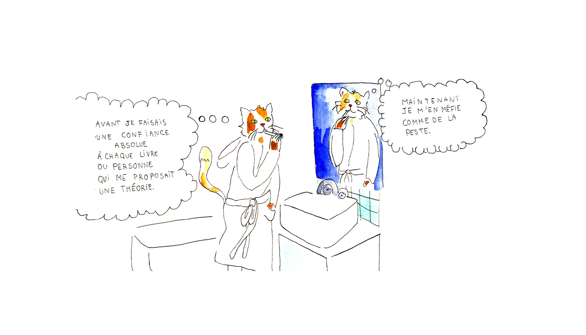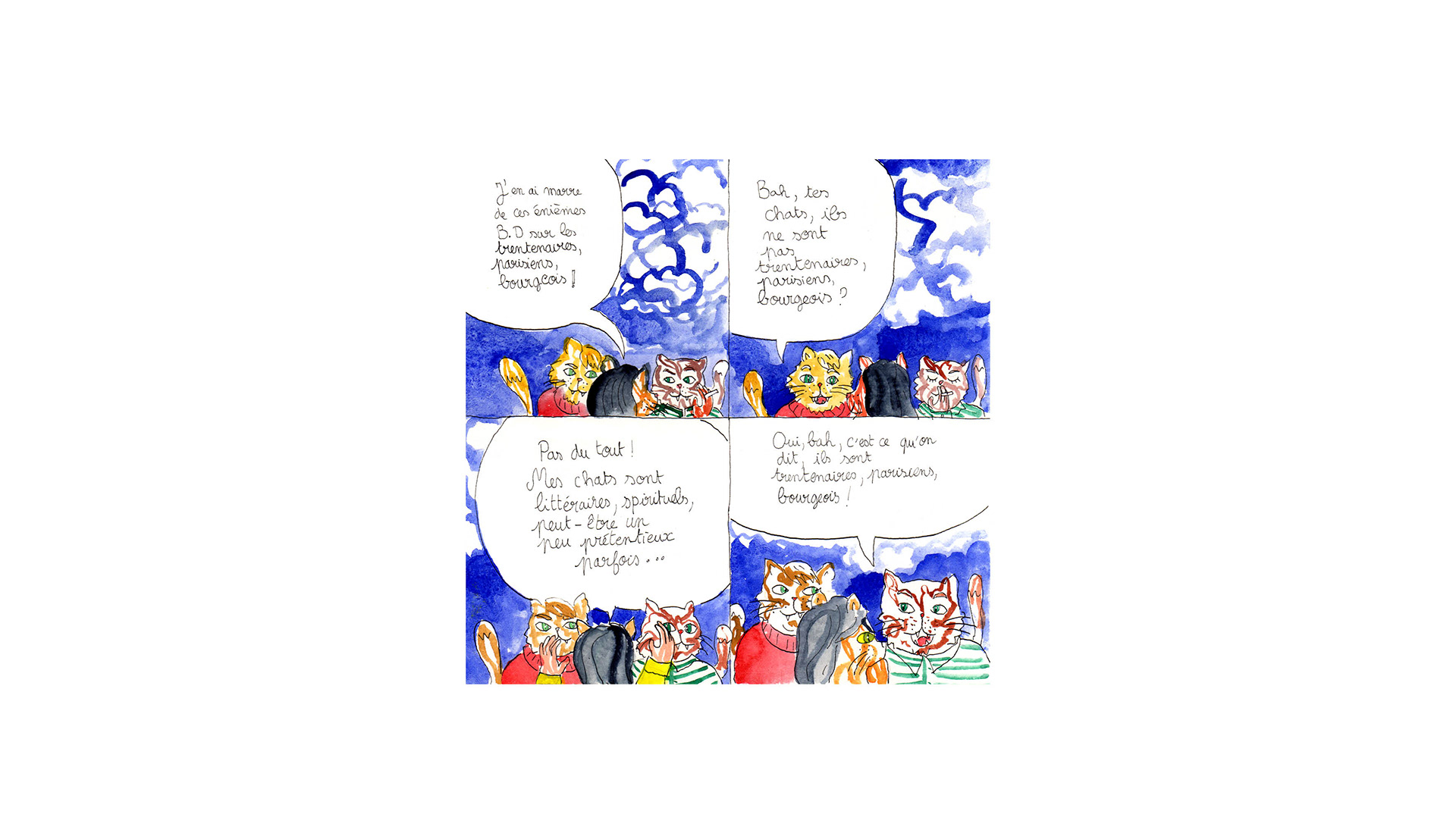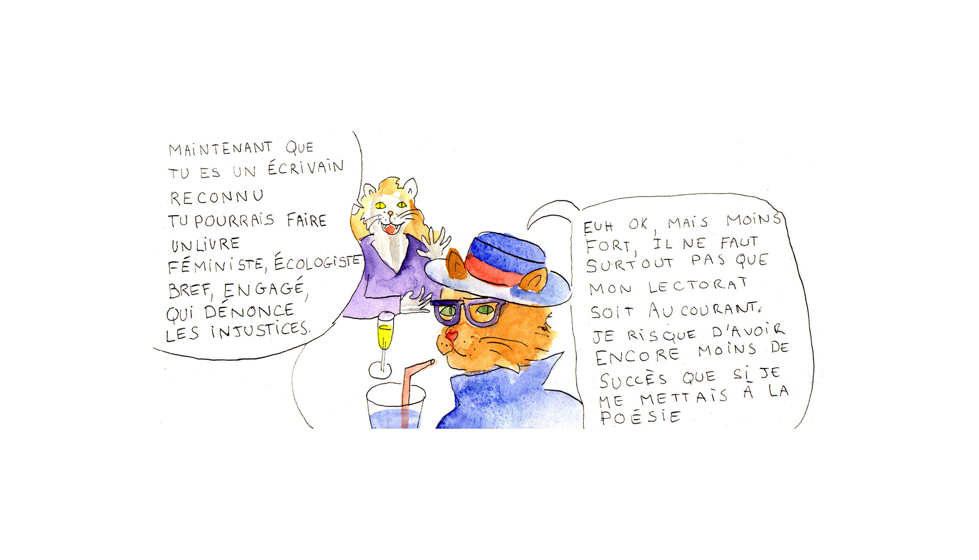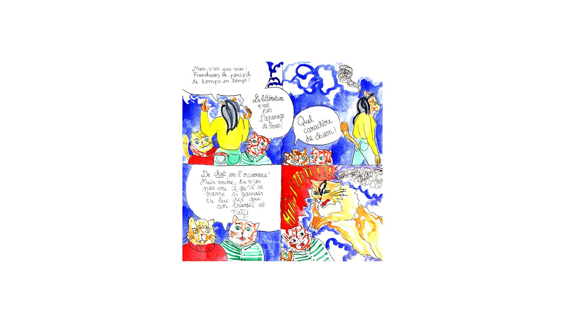 Des chats qui parlent de littérature et se posent plein de questions. Édités et rassemblés dans un recueil paru en 10 exemplaires au SPIN-OFF d'Angoulême 2019 sur le stand de L'Ennui.