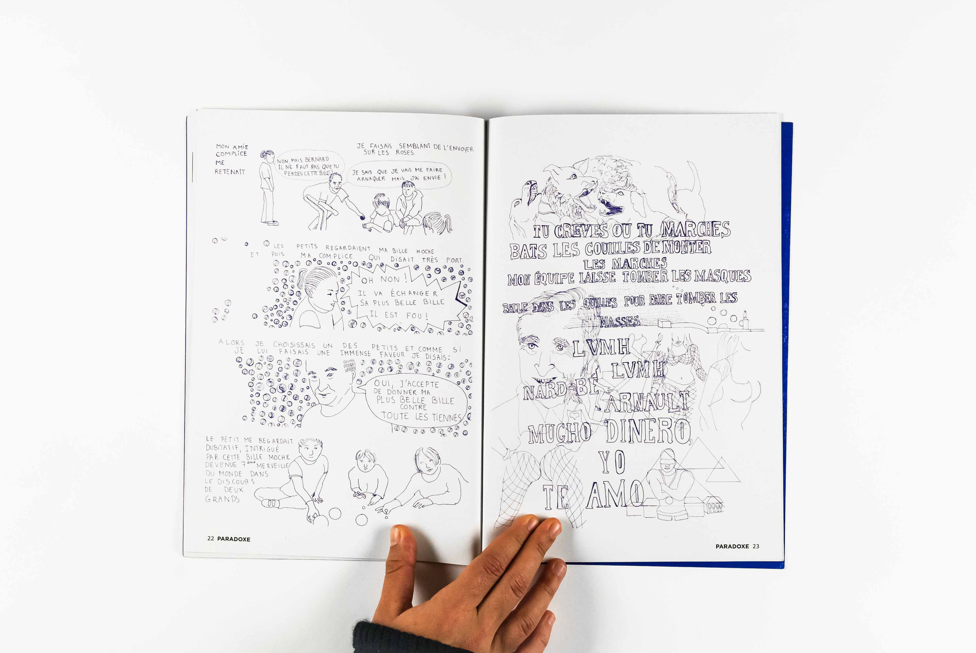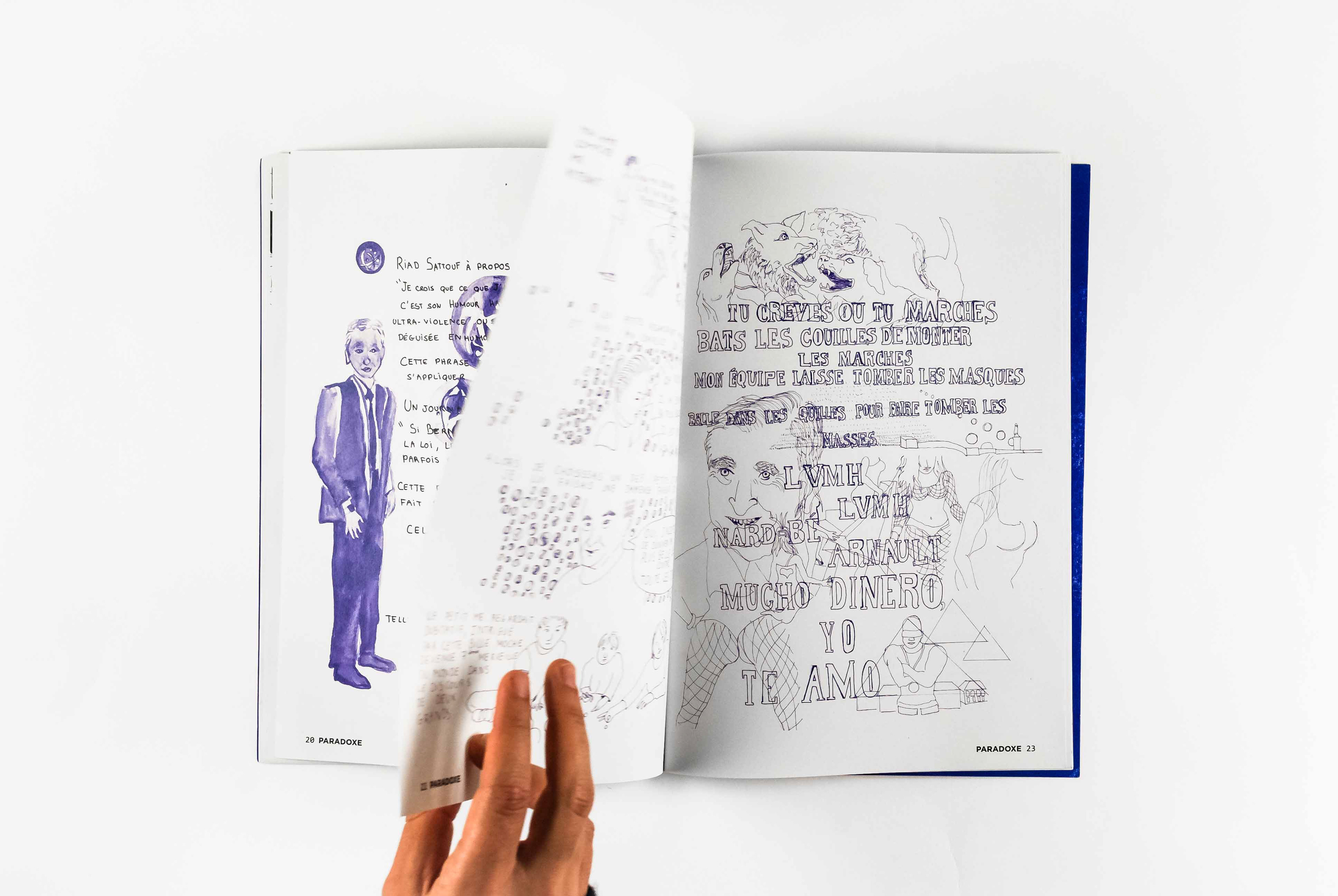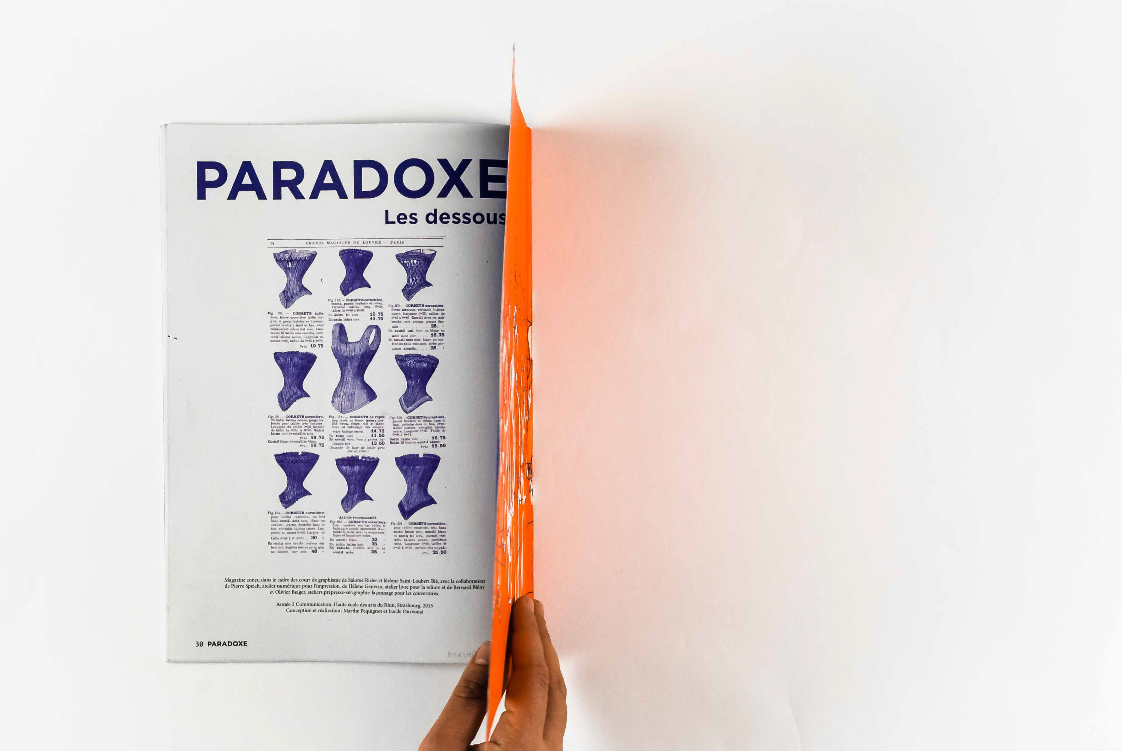 Graphisme, bande-dessinée et Illustration de couverture. Impression de la couverture en sérigraphie. Paradoxe est une revue réalisée en collaboration avec Lucile Ourvouai en Avril 2015.