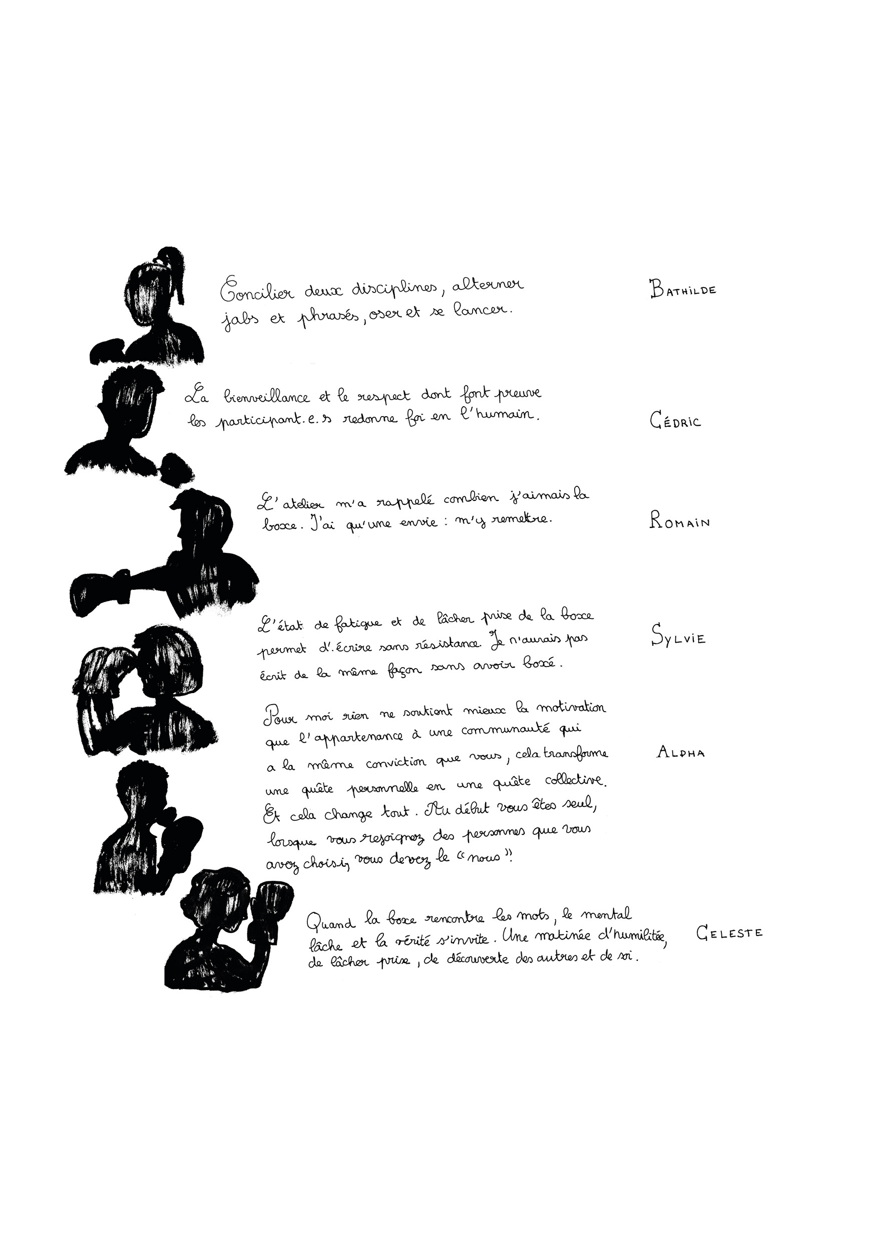 Je suis venue « croquer » et raconter l’aventure Boxe & Écriture en images et en textes.